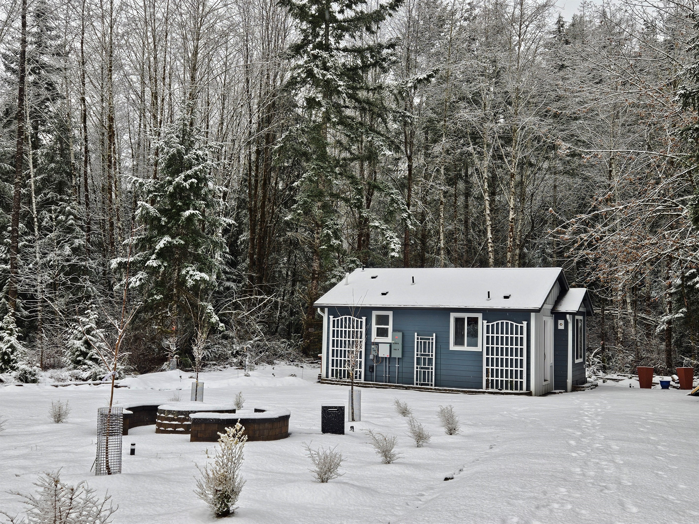 -- Private: 11 densely-forested acres shared with only our home offices and a single guest RV parking site